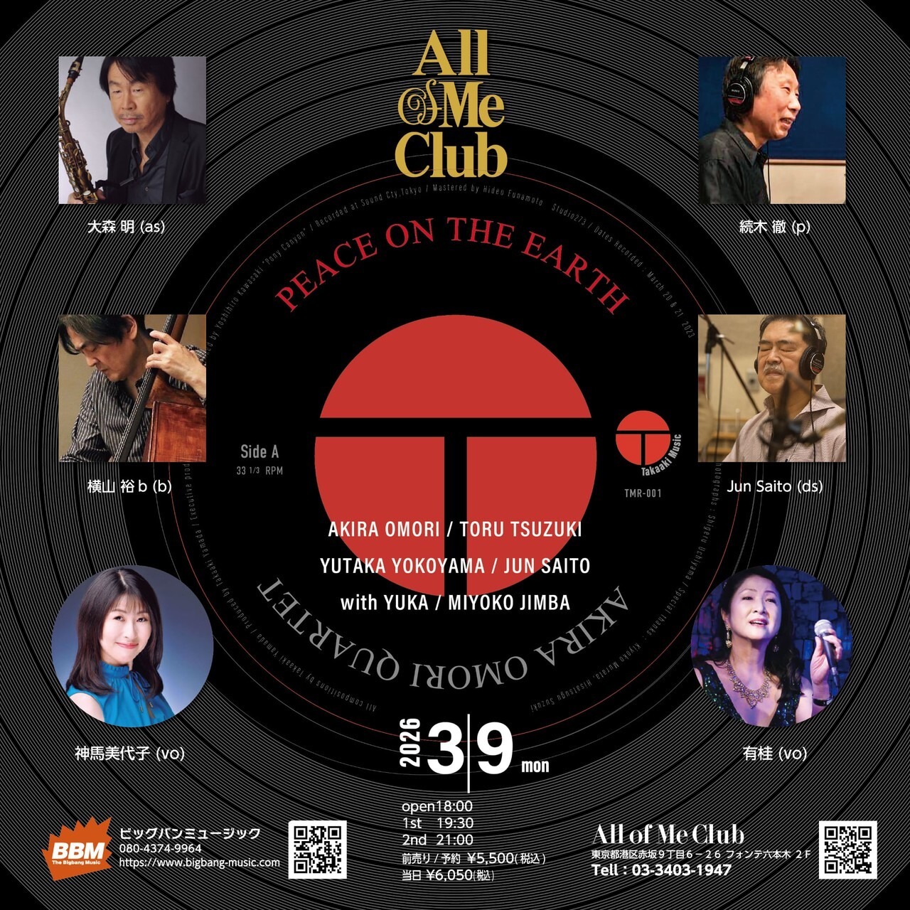 2026.3.9 [PEACE ON THE EARTH] 山田壮晃カルテット with 有桂 at All of Me Club